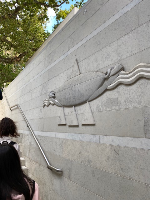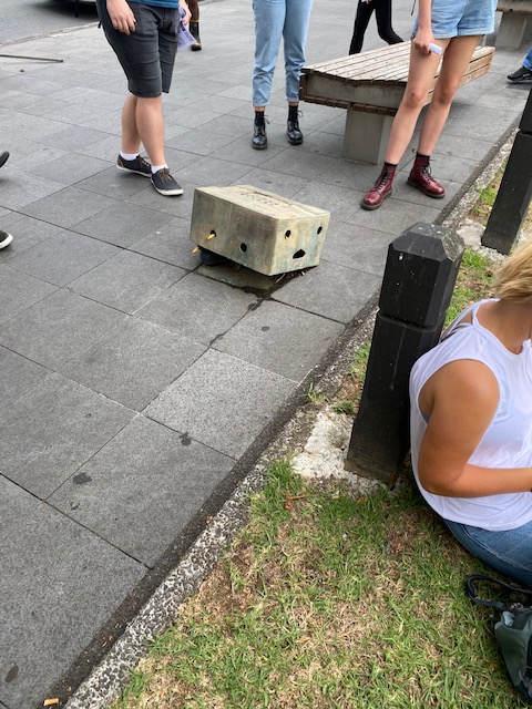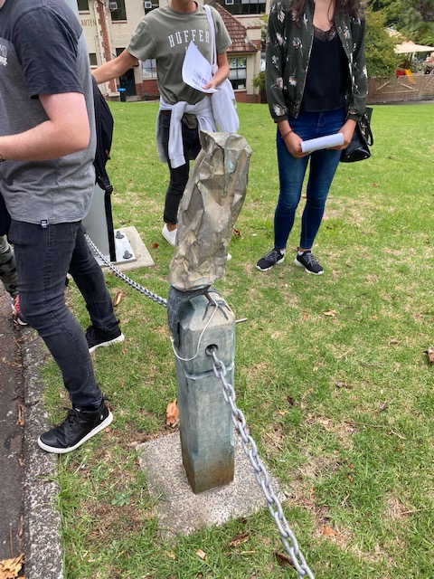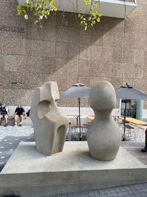 My favourite sculpture we looked at during the walk was the two Maori anchors located on Wellesley street. One sculpture represents the Matahorua anchor, which according to Legend Kupe, sailing in the Matahorua canoe discovered New Zealand and returning to Hawaiki gave navigational directions which the Maori followed many generations later. A stone that lays at the Paremata is claimed to be the Matahorua Anchor.