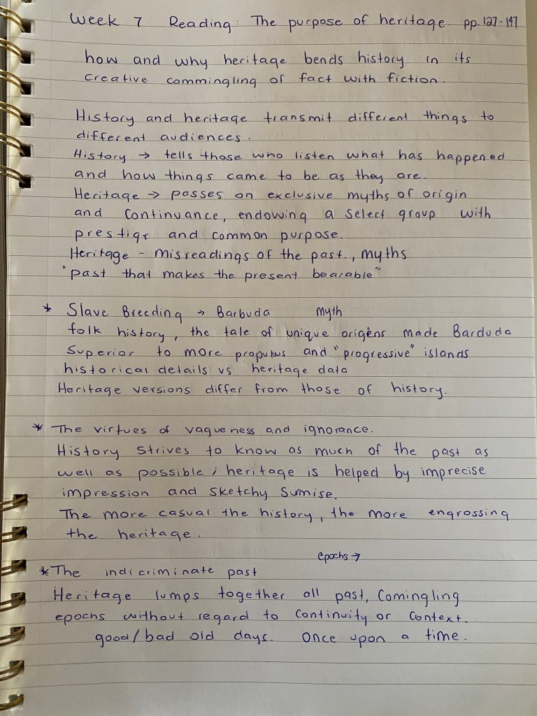 Reading two: The Purpose of Heritage pp.127-147, by David Lowenthal