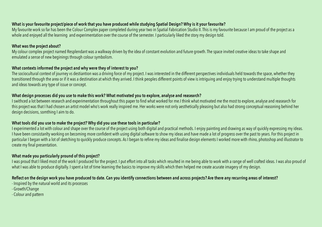 Why is your design addition important in a contemporary context? My proposed design ideas could be viewed as important in a contemporary context as it ensures the current and future generations understand the connections we have with nature. The relationships may differ between cultures though each individuals perspectives are important.