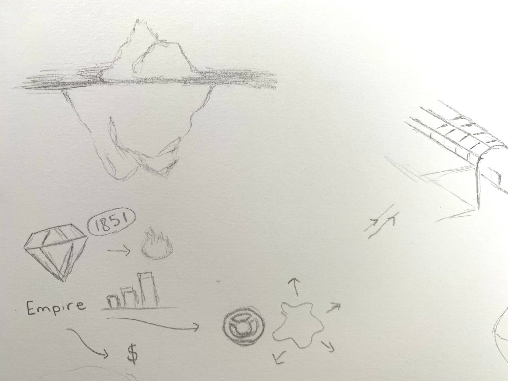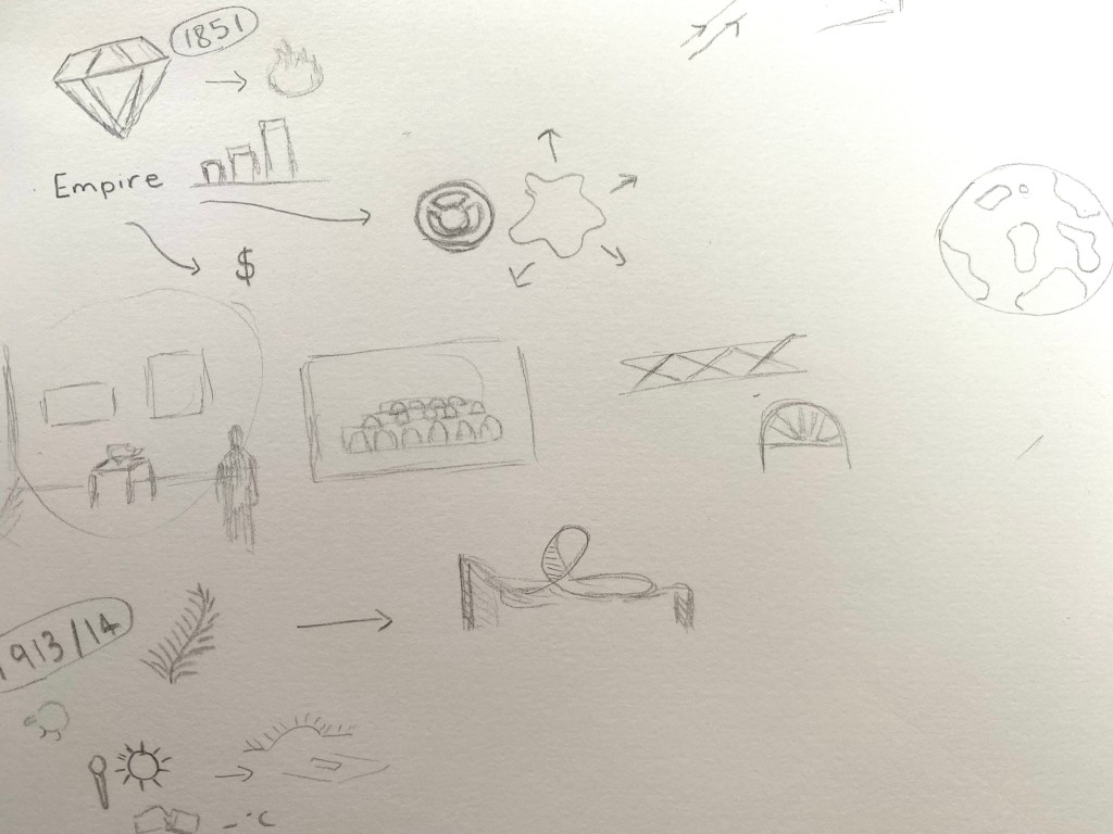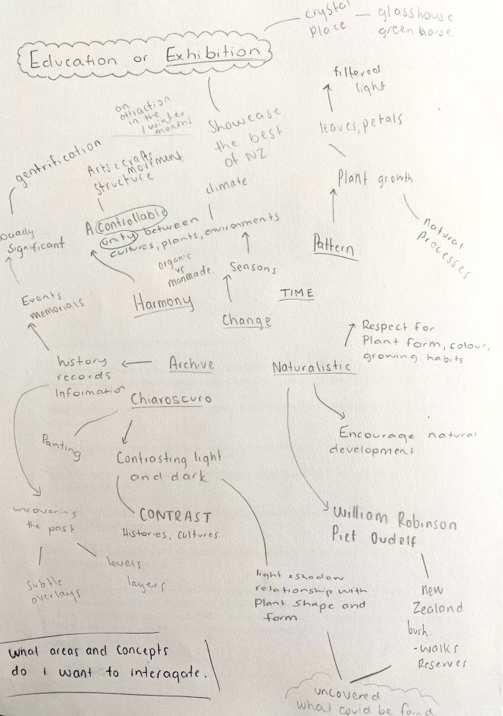 During Carls context talk he challenged the class to note take through only sketches. This meant we finished the talk with a series of visuals that we can piece together to recall information. Below are my quick sketches that explore the history of the Auckland Domain Winter Gardens from a cultural context.