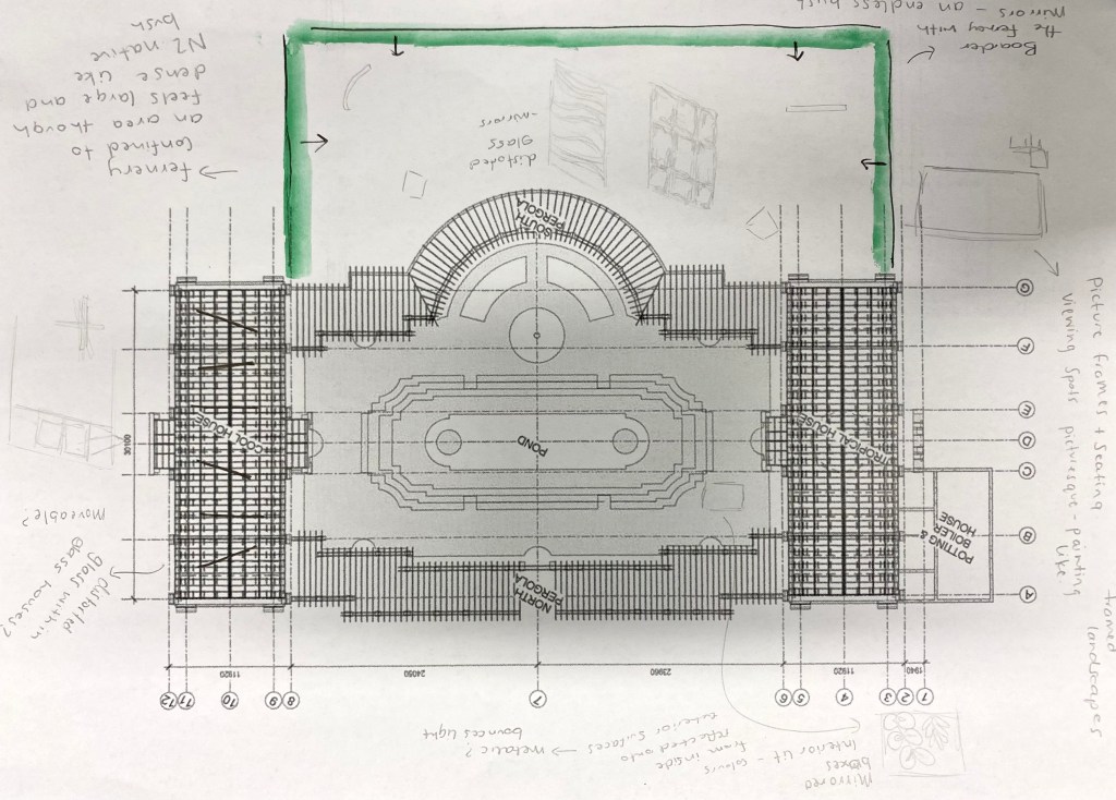 Originally designed by Gummer and Ford, the garden was built in stages between 1916 and 1928 consisting of two barrel-vaulted steel glasshouses joined by a courtyard and pergolas that back onto the Fernery. The complex is a Category 1 Heritage Site meaning it is highly protected and its history must be respected throughout my design process.