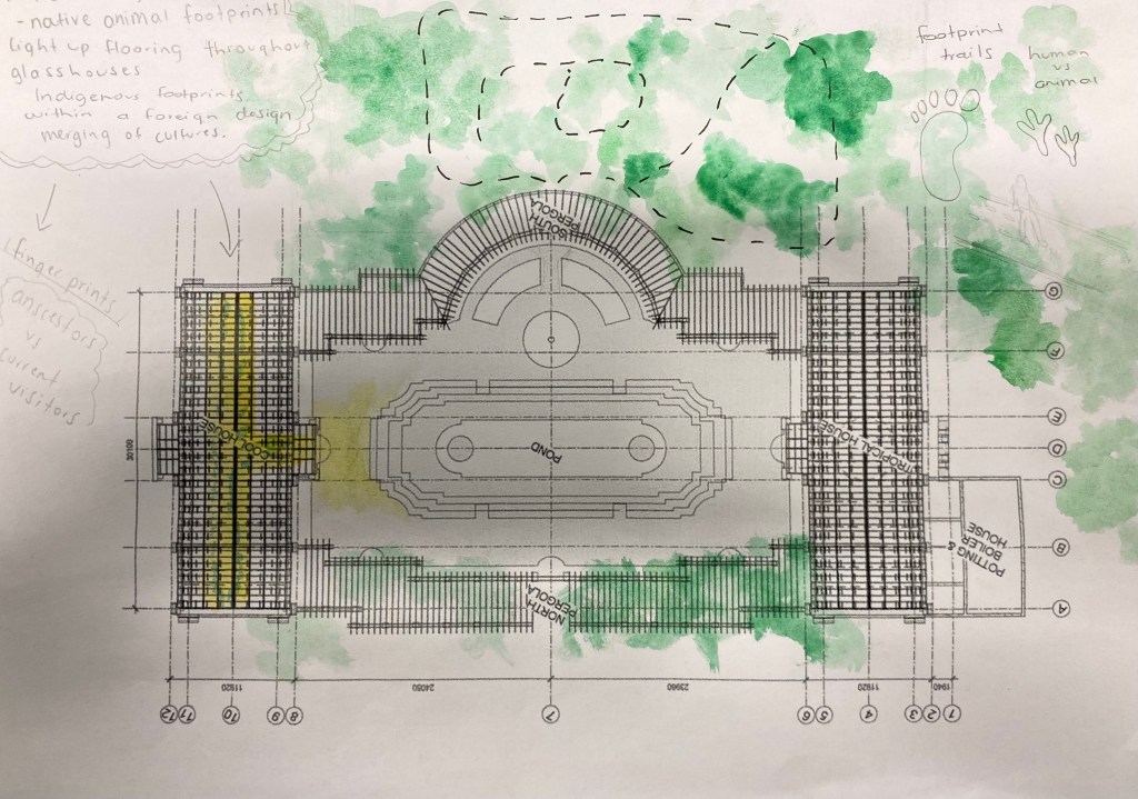 After discussing with my peers when pinning up we made minor changes to my final layout. We moved lighting information at the bottom to above the fernery plan so that it sat with the rest of the same imagery. This helped my design be read better as whole.