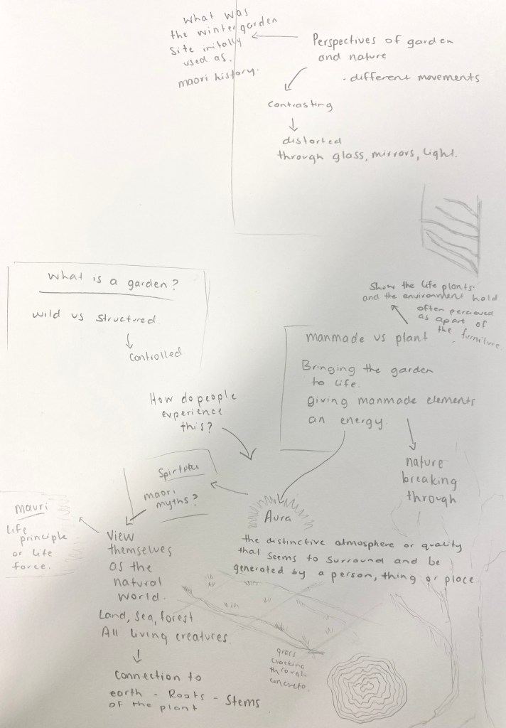 I admire nature’s ability to grow and change over time creating a contrast of texture, colour and form. Working with a site where plant requirements are the driving force of the design intrigues me as I begin to think about how my design could evolve and progress like nature does over time. a garden should encourage natural development and have respect for plant form, colour, growing habits and foliage rather than adhere strictly to a layout. The glasshouses seen in the Wintergardens highlight our now distorted perception of nature where we see ourselves as observers of these structured environments.