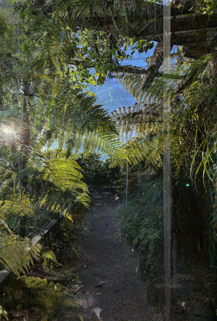 I then created a two image series named ‘Encompassed’ that communicates the wild, dense bush feeling the fernery creates. Through layering of imagery I focused on the patterned details of the plants and pergolas located within the fernery.