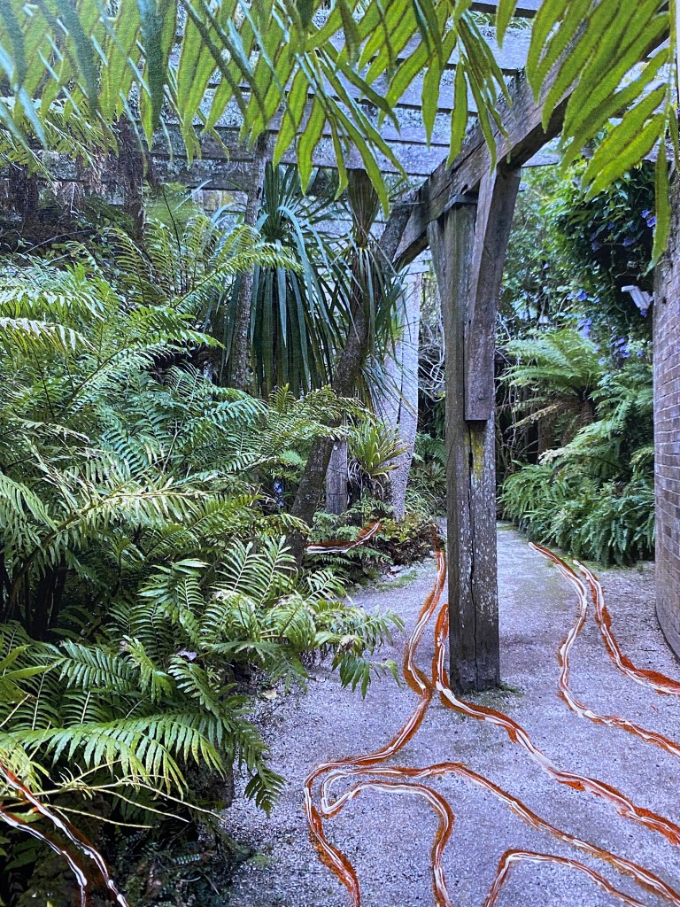 The relationship between light and shadow within the Auckland Domain Wintergardens landscape has been a visual concept that intrigued me since the first site visit. The detail of shape and shadows creates a sense of delicacy throughout. Soft filtered light trickles through layers of foliage leaving traces of light scattered along surfaces that change over time. These visual elements within the wintergarden made me wonder how I could use light to enhance the beauty of the site in a way that tells a story. I plan to open the Wintergardens up to the public after hours to create a light installation exhibition within the fernery space. I have chosen the fernery as it is an area of the gardens that specifically focuses on native New Zealand plants. The dense foliage of varying heights creates a captivating environment that feels bigger than it really is. The purpose of the exhibition will be to both theoretically and literally shed a light on the hidden New Zealand history of the site while also celebrating the already existing beauty of the gardens themselves. Fluorescent light strips will be placed around the fernery in a pattern that has been taken directly from the contours of the Auckland Domain and wider Auckland. This design celebrates the significance of the land the site sits upon as its one of the oldest parks found in Auckland. The lights will have a subtle red glow to pay respect to the volcanic ground the site has been built upon. Red light is also proven to help with plants root growth and germination. The exhibition will allow visitors to view the fernery in a way that acknowledges New Zealand’s idea of nature where a more naturalistic growth pattern is seen while being immersed within an atmosphere of plant and light that recognises the significance of the indigenous history of the site.