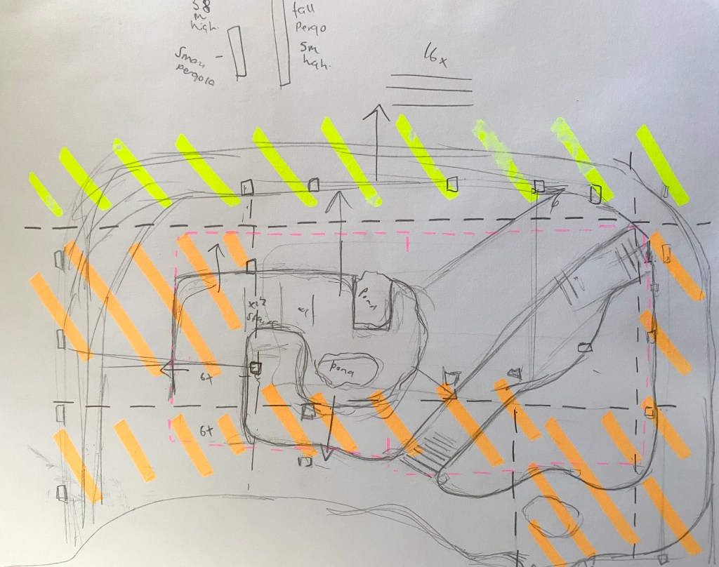 Above is a series of plan sketches I completed as a part of a study group activity. Each plans consist of sketches and annotations of a number of ideas I have had when thinking of how lighting could impact the site. I then worked through a project planning question sheet that helped ground some of my ideas and pushed me to think about how people would experience the space.