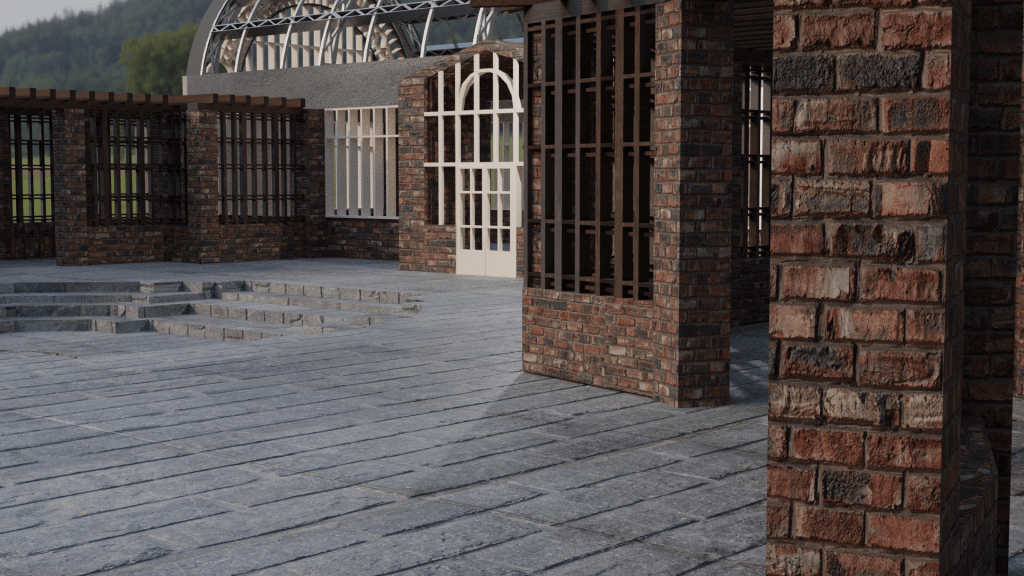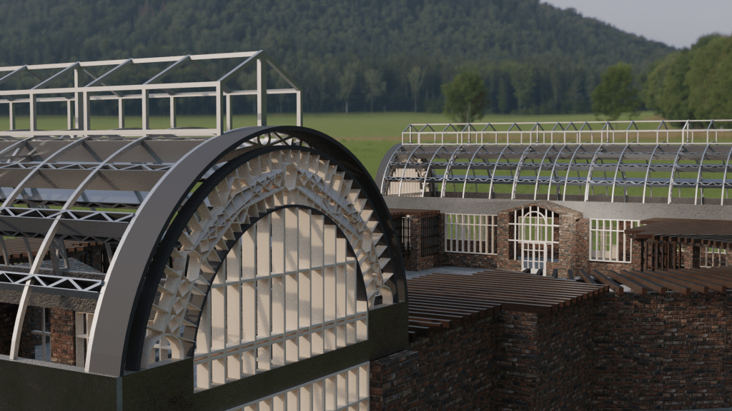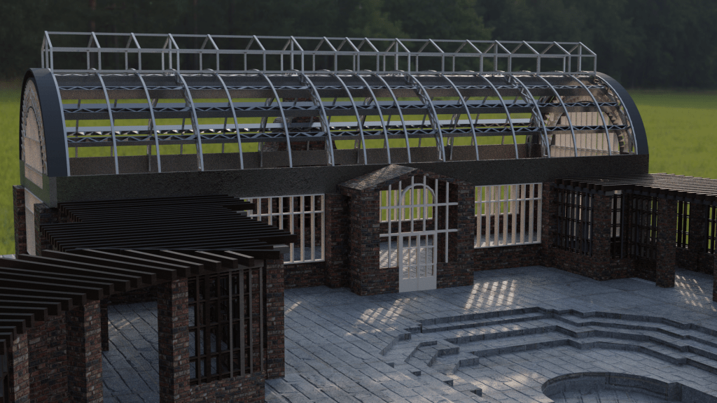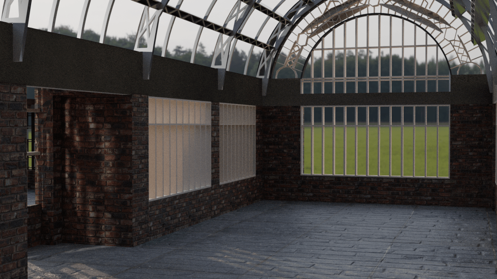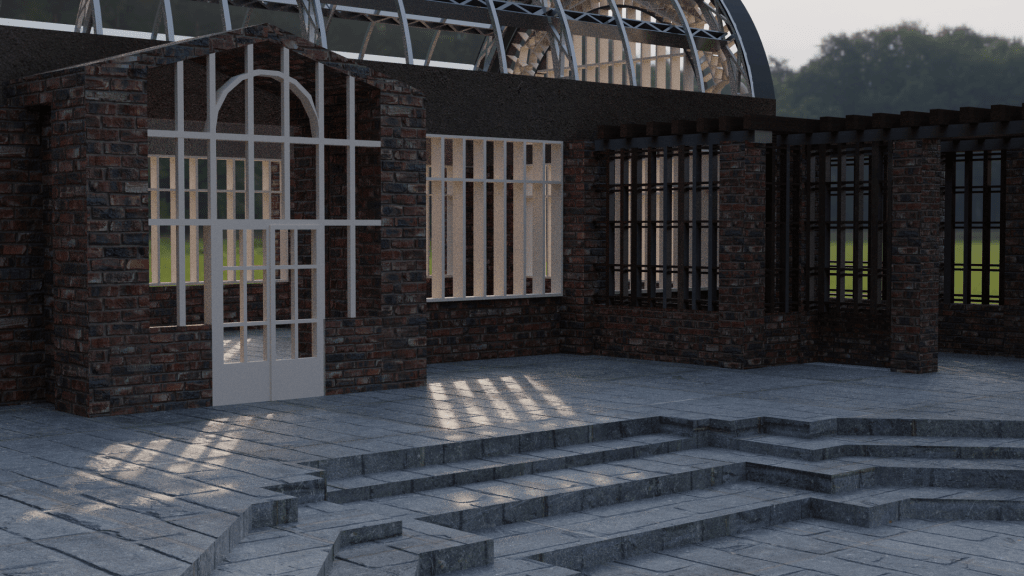 From this revisit I was able to continue developing my rhino Winter Gardens model by adding the fernery space and beginning to render the materials of the site on blender.