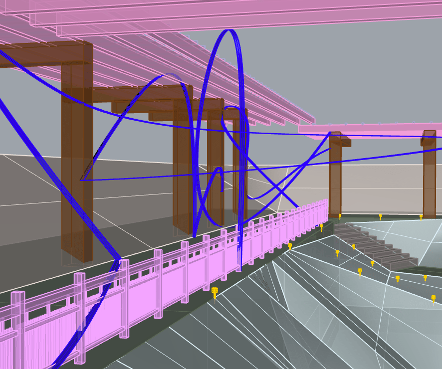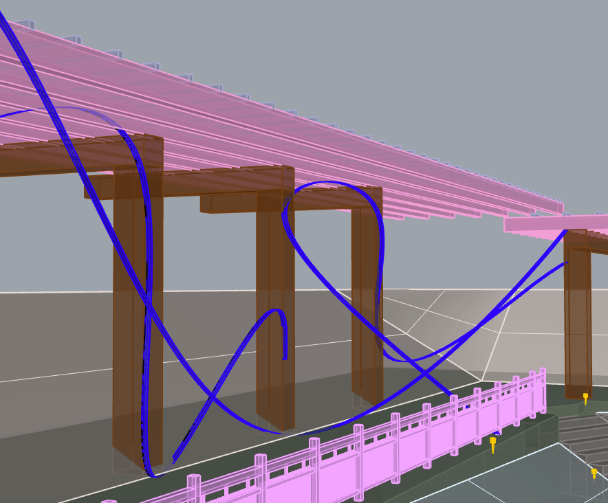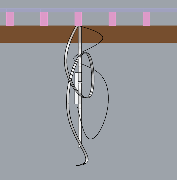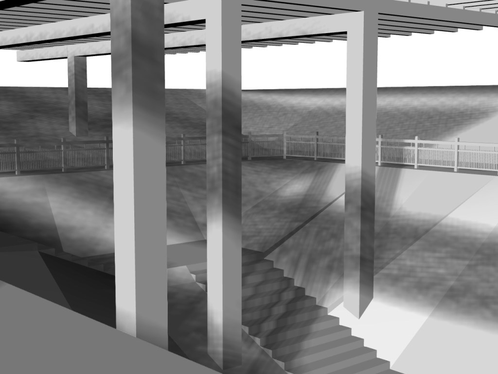 For the upcoming presentation in week 8 I chose to develop both plan and section drawings digitally that I could then sketch my design idea onto. I also created some simple perspectives of my design idea through both sketching and painting onto photographs I had taken of the site. I created some simple wire models of some of my chosen contours to give the viewers and idea of the physical look of the fluorescent tubes.