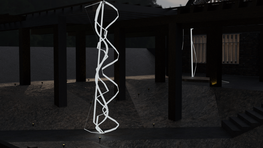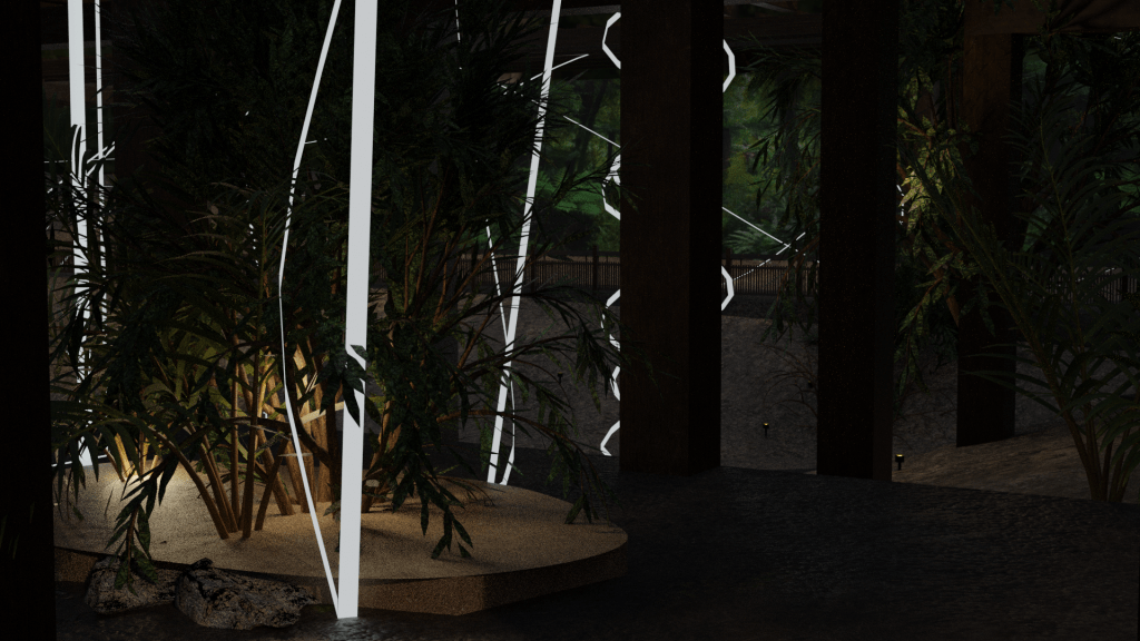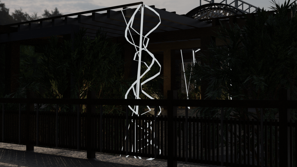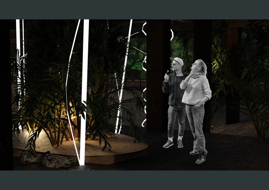 The second set of light installations within the fernery will be a series of LED light sculptures inspired by the Maori myth I described above that relates back to the creation of the natural world and the New Zealand Indigenous views towards native environments. The series will consist of four different elements, three of which will be stand alone sculptures that will represent either the forest, wind or seas. These will be placed around the fernery evenly so that light dispersed sits at the same level throughout the entire space. The fourth will a be larger sculpture that spans the length of the fernery along the back walkway. The design will combine elements from the three smaller sculptures while embodying the idea of separation, however it will give visitors a more interactive experience as they walk through the sculpture surrounded by light.