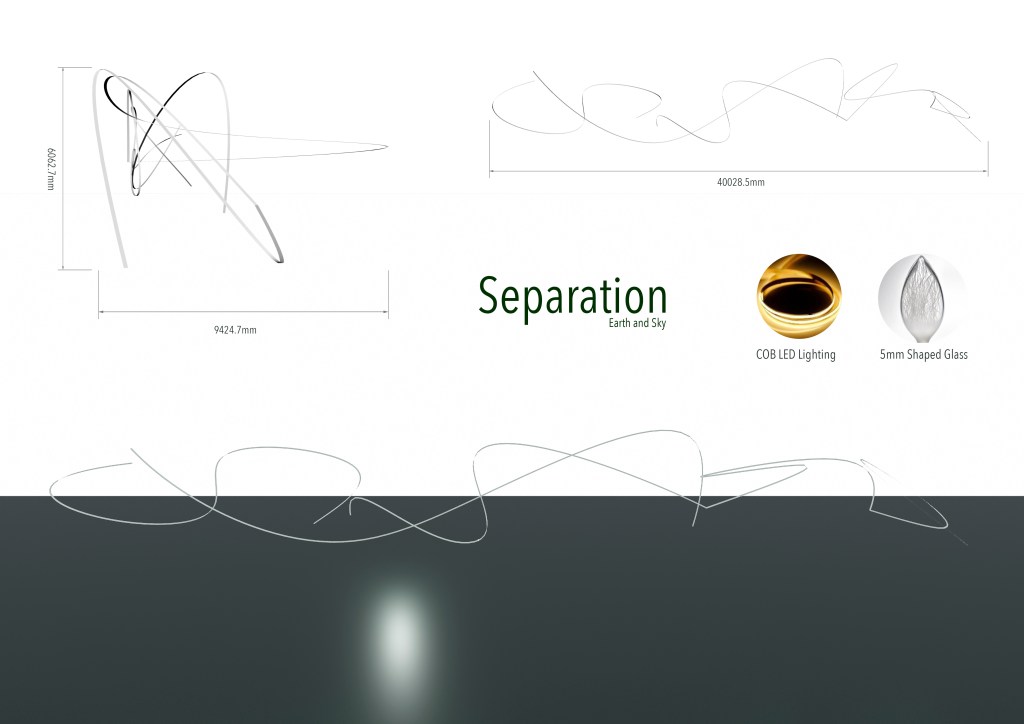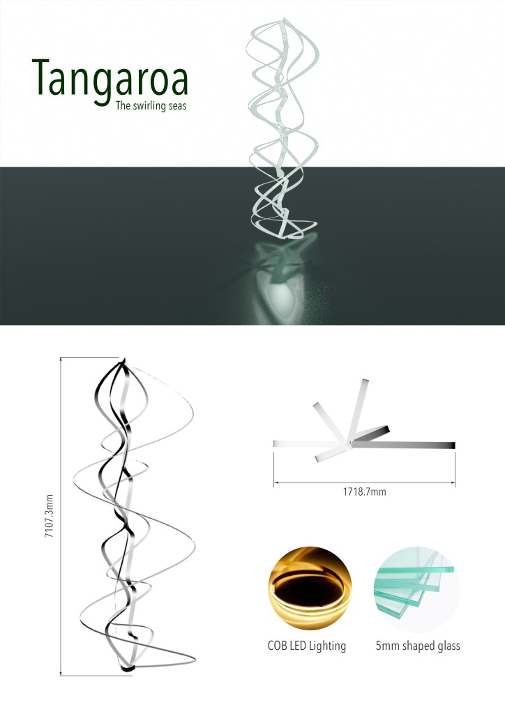 The glass sculptured will be made from 5mm thick shaped glass. Lighting will be applied to the forms by using chip on board (COB) LED light strips. Compared to normal LED lighting COB has improved light efficiency, improved glare effect and reduced light loss